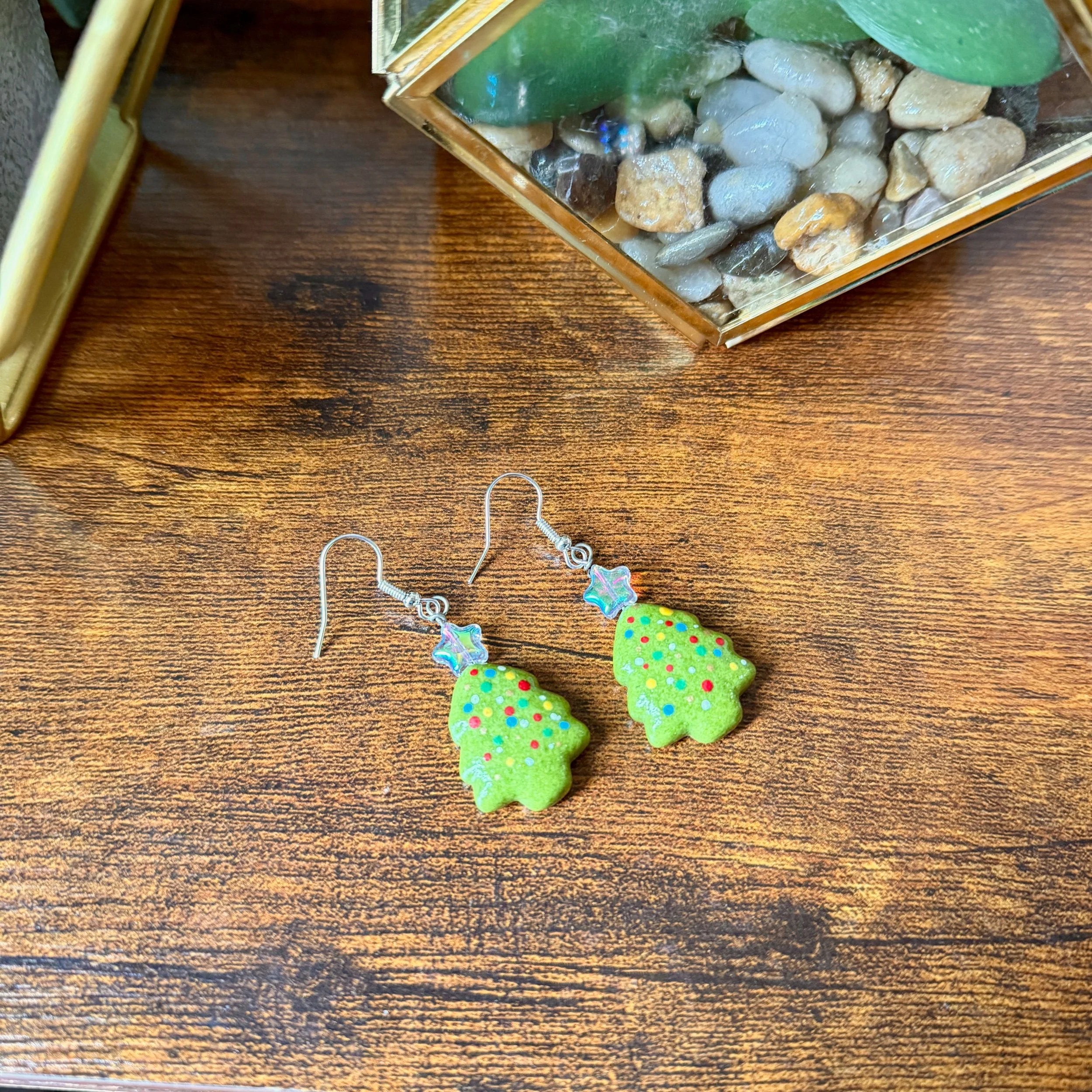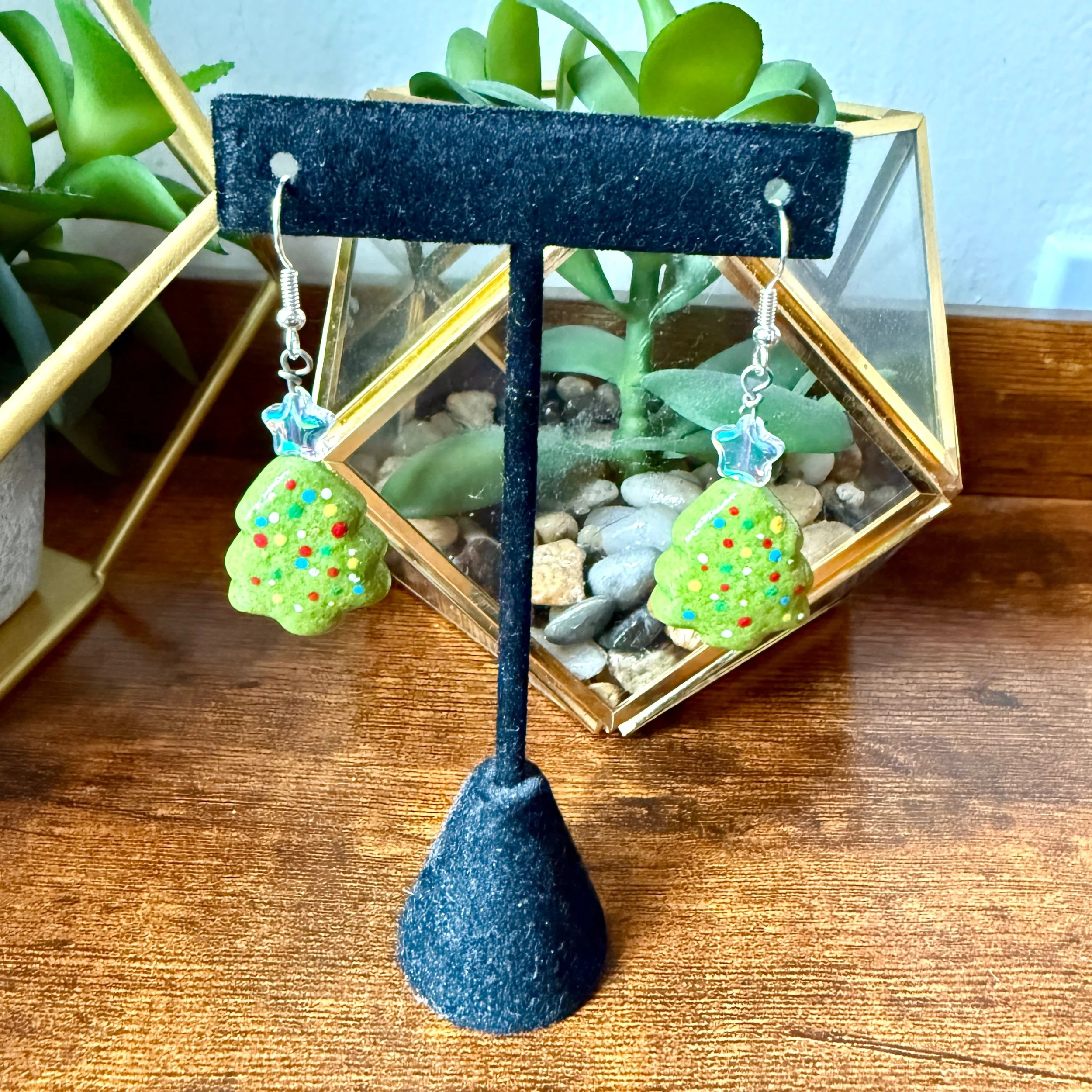 These little trees are made of glass and decorated with little baubles. They are topped with an iridescent glass star bead.